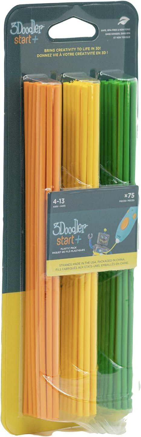 3Doodler Start+ plastic filament is compatible with the 3Doodler Start+ 3D Pen. Do you want to take your creativity to new levels? 3Doodler Start+ plastic is low-heat and completely safe for kids. Bring any idea to life, or personalize your existing items with a variety of colors available in mixed packs or as single colors. 3Doodler Start+ plastic is safe to Doodle on almost any material, and can be easily removed from most materials. 3Doodler Start+ plastic extrudes up to 6 times the original length, so one six-inch strand produces over 35 inches of Doodles.
