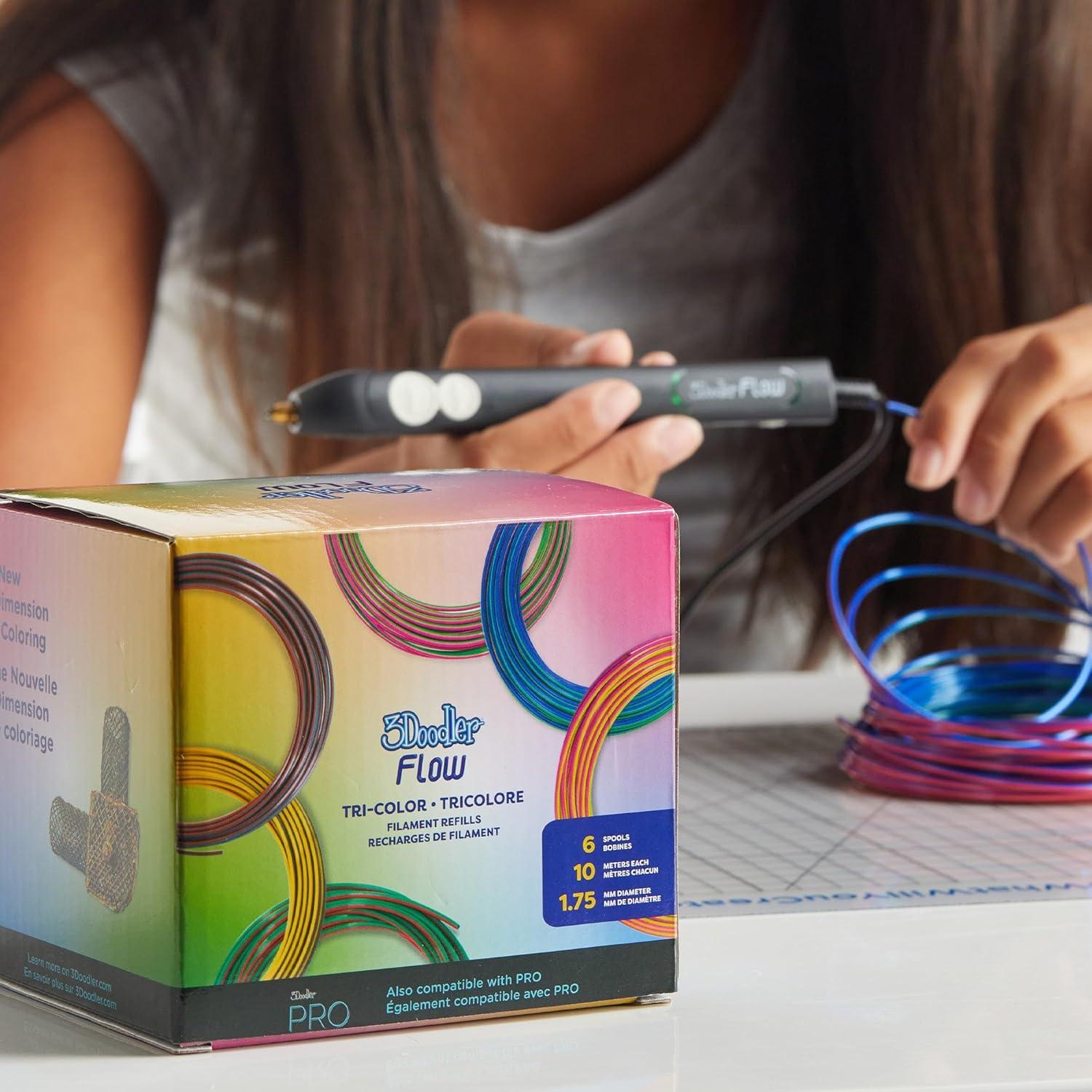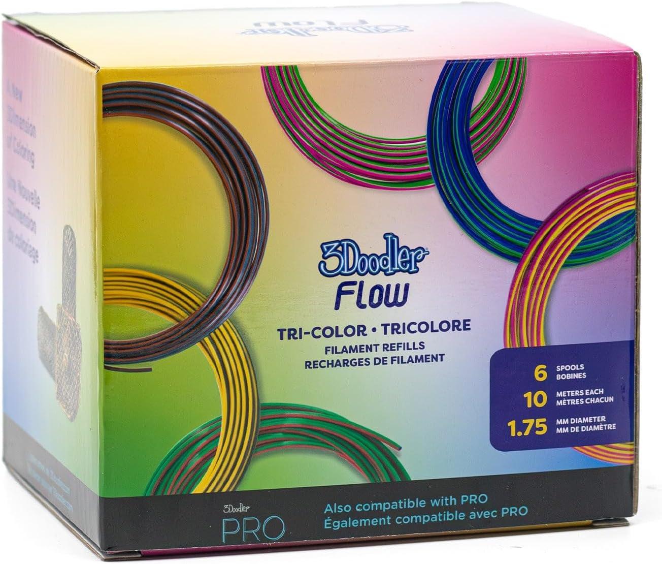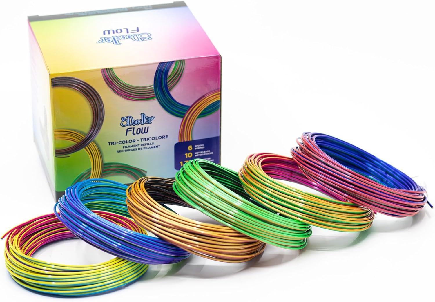 Tri-Color Filament Refills – Unleash your creativity with 3Doodler’s Tri-Color PLA filament refills. Each pack includes 6 spools, offering a total of 60 meters of vibrant filament. Designed for 3D printing pens, these refills provide smooth, consistent extrusion, perfect for intricate designs and detailed projects.